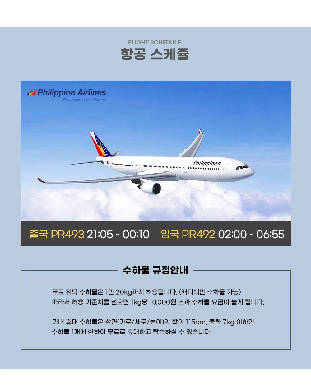 PR493총 3시간 30분 소요직항 |
