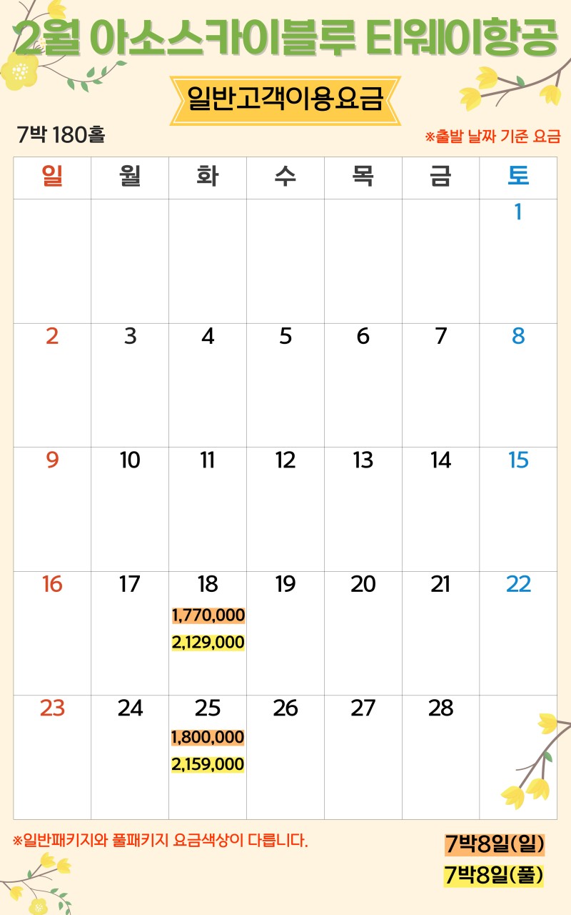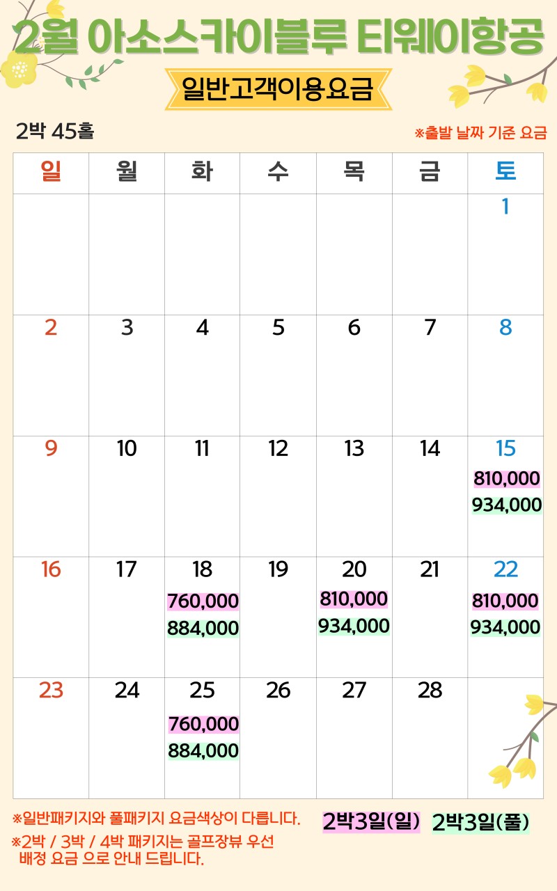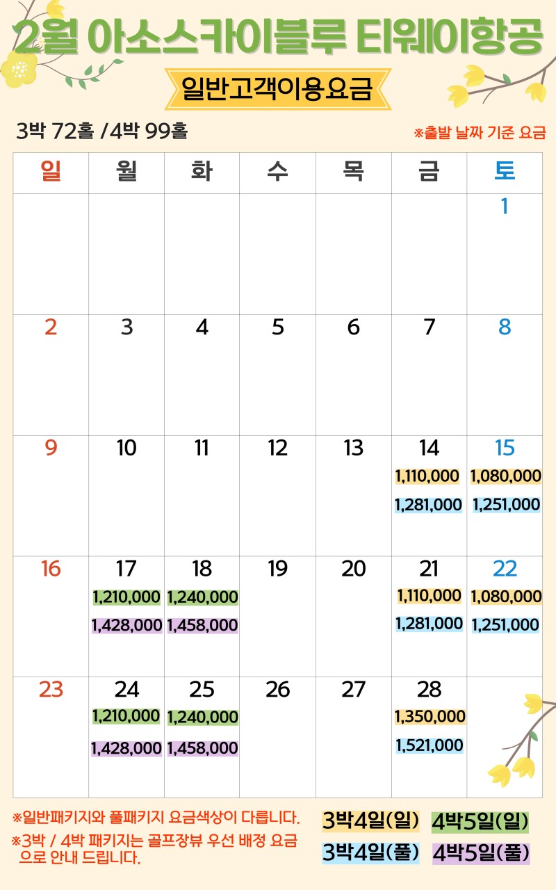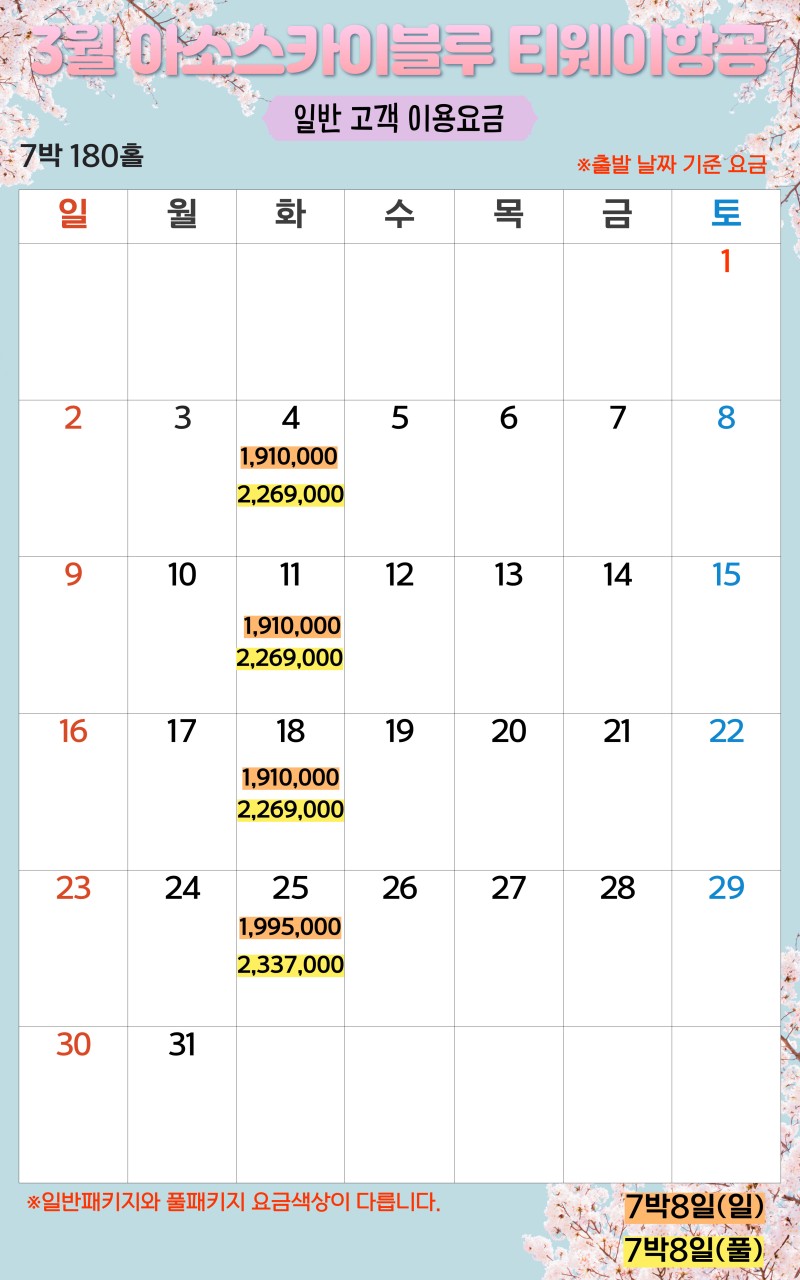 ** 2박3일: (화),(목),(토) 출발