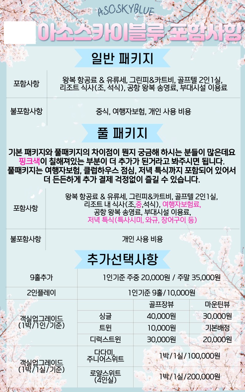 🏨호텔: 아소스카이블루 리조트(2인1실)