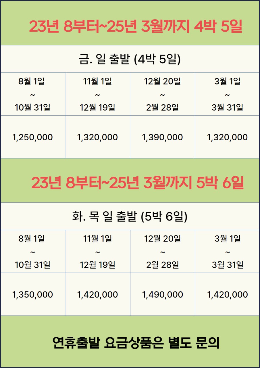 5박6일 - 화.목.일 출발