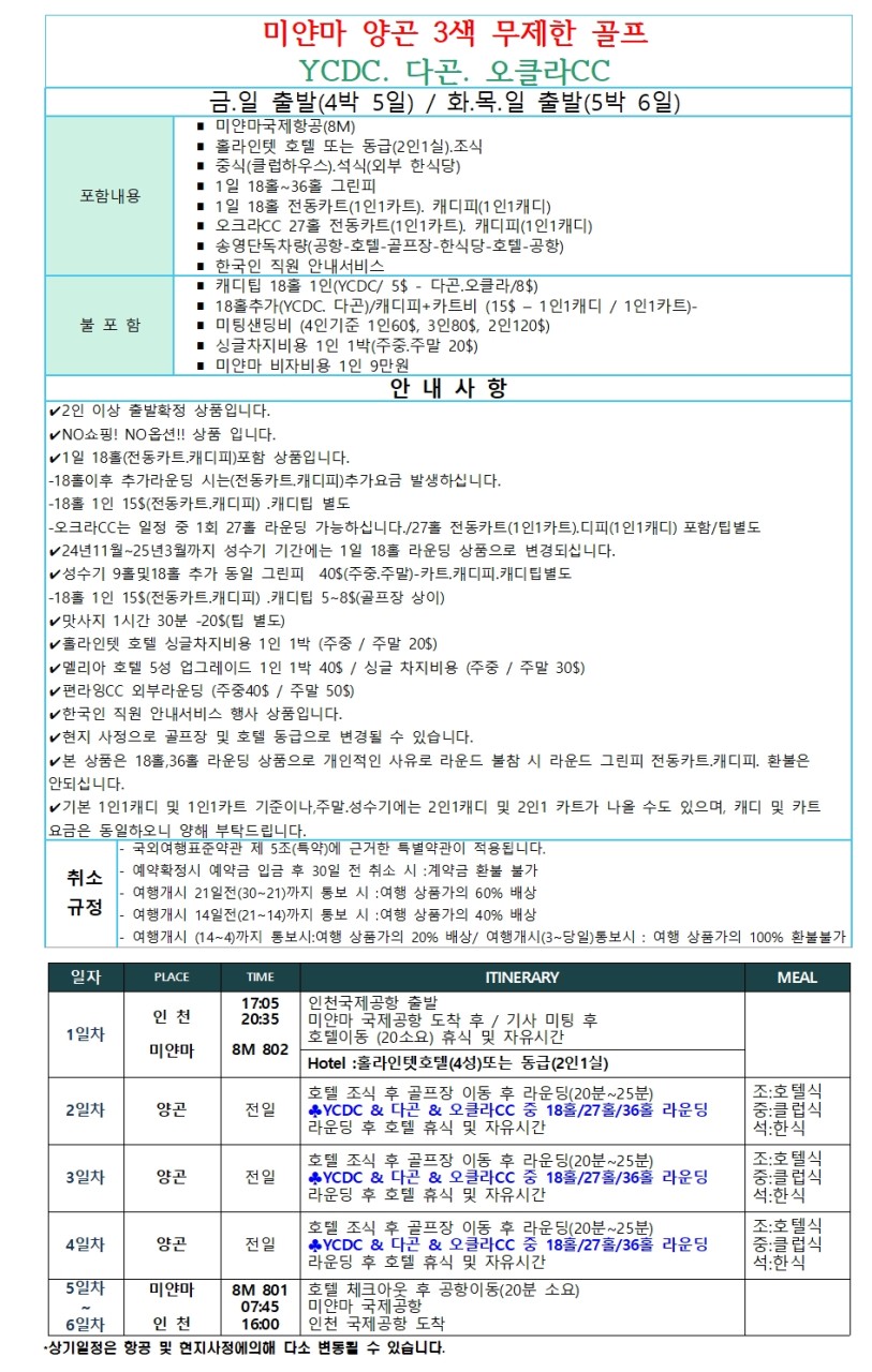 24년10월31일까지 출발상품에 한해 1일 36홀 무제한 골프가 가능한 상품입니다